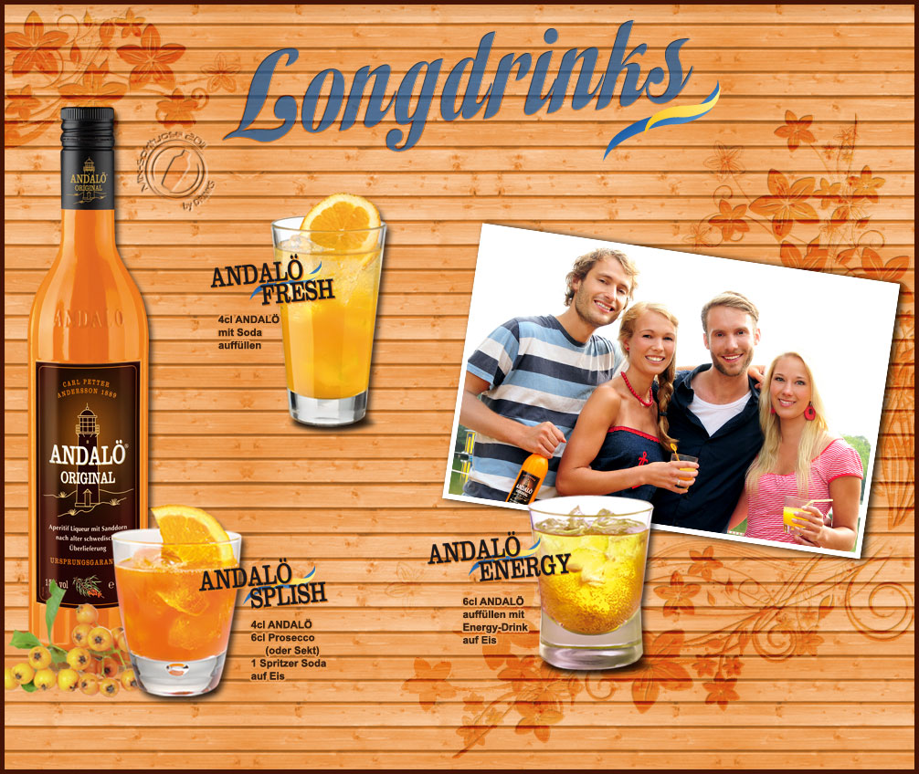 Perfekt als Aperitif mit Prosecco, erfrischend als Longdrink mit Mineralwasser: Andalö, der schwedisch inspirierte Sanddorn-Liqueur, begeistert Sanddorn-Liebhaber und Sanddorn-Entdecker gleichermaßen.